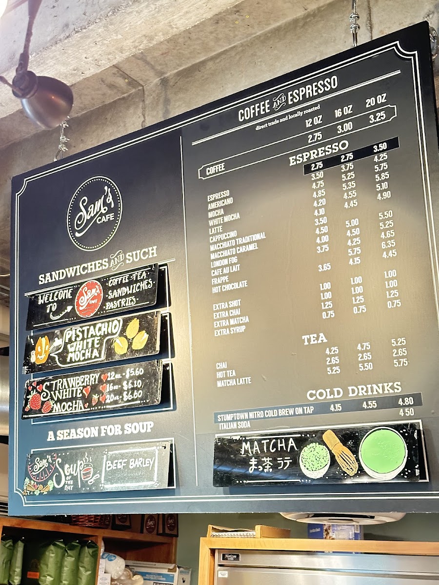 One of the standout features of Sam's Cafe is its impressive coffee selection, featuring locally sourced Stumptown Coffee beans. Whether you crave a classic Americano or a rich Mocha, there's something for every coffee enthusiast. For those who prefer a twist, the dirty chai latte has received glowing reviews as a must-try.